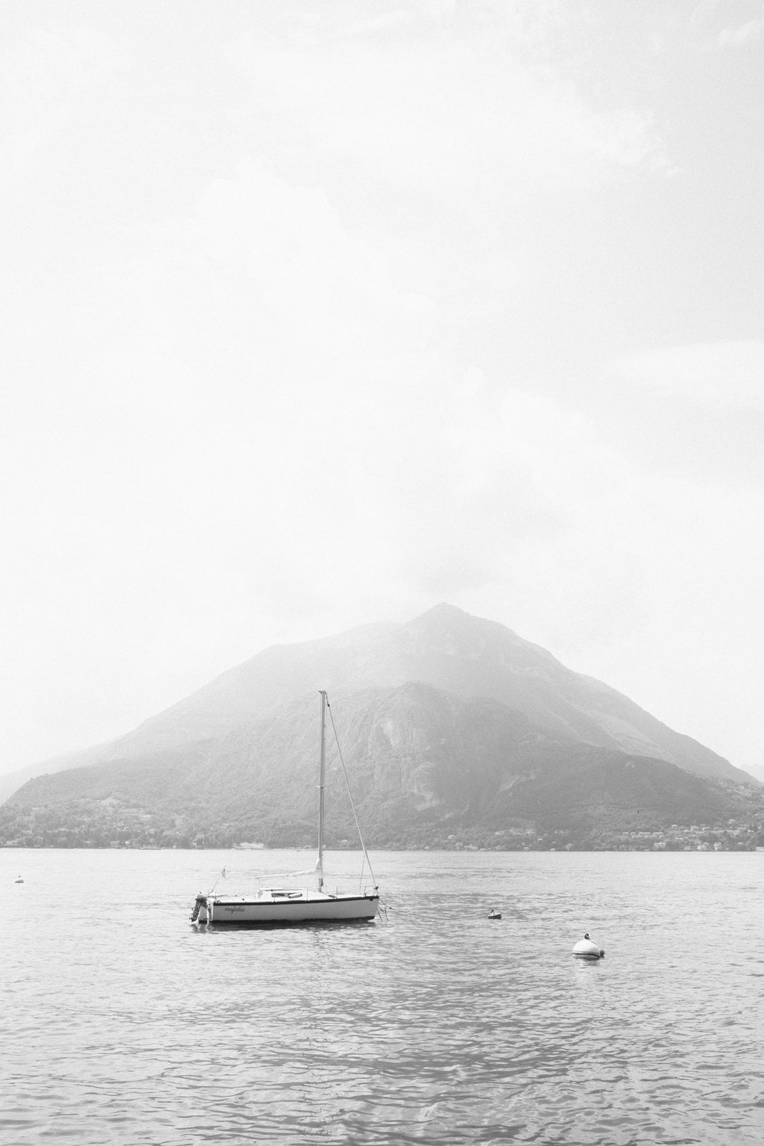 Moored in Lake Como a sail boat is swallowed by the haze, a peaceful scene...