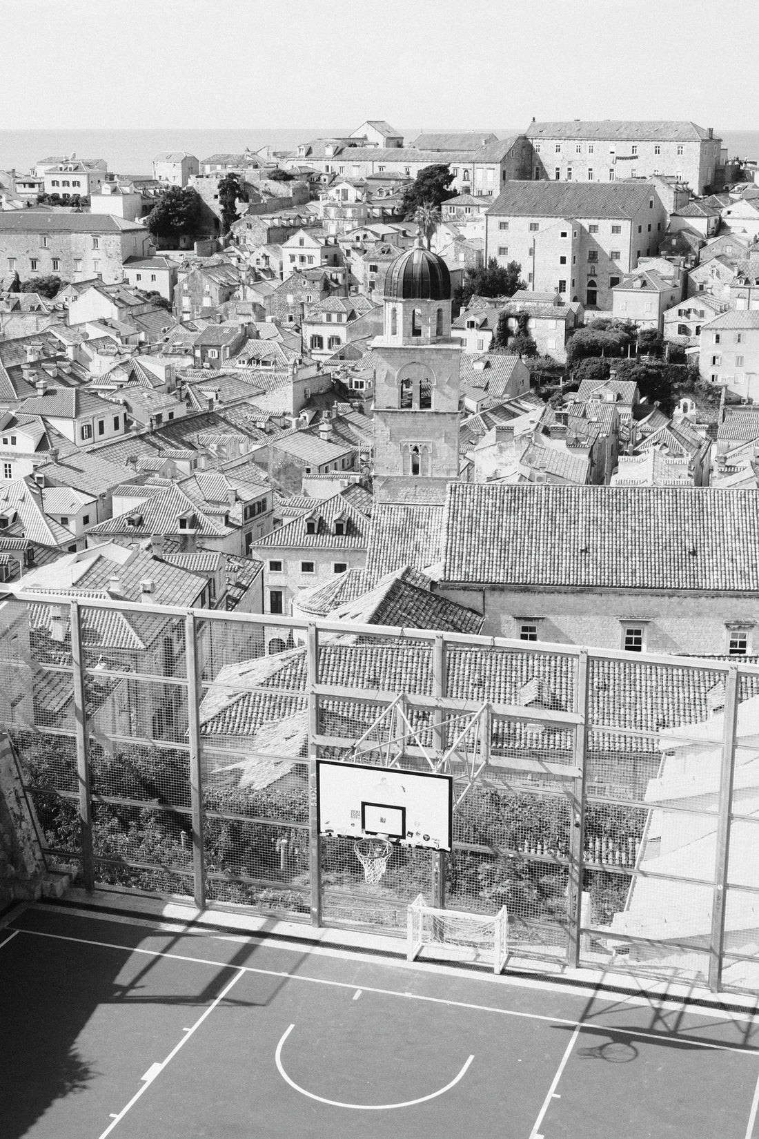 A contrasting scene of everyday life with historic architecture, captured from the vantage point of...