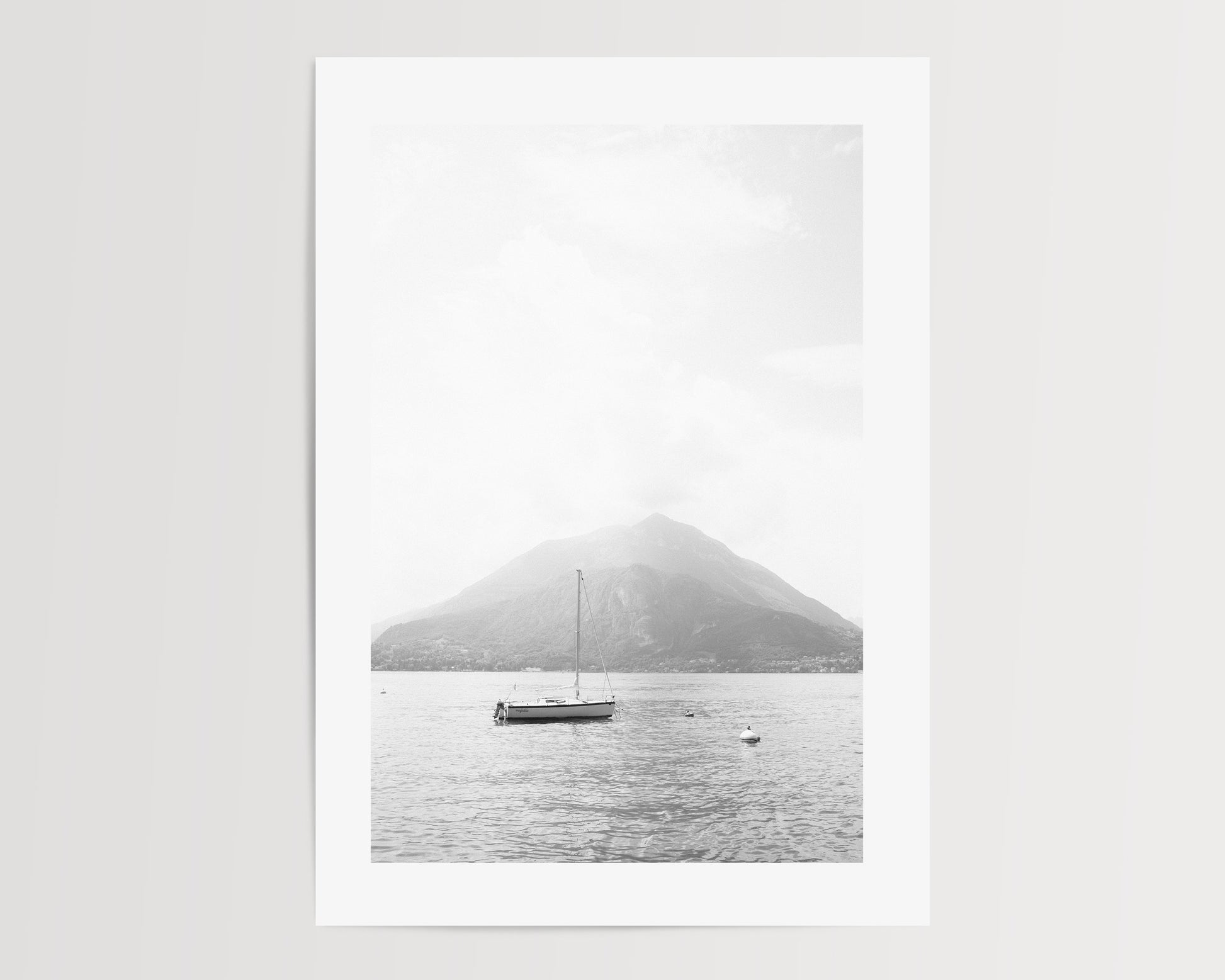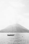 Moored in Lake Como a sail boat is swallowed by the haze, a peaceful scene of serenity.