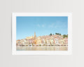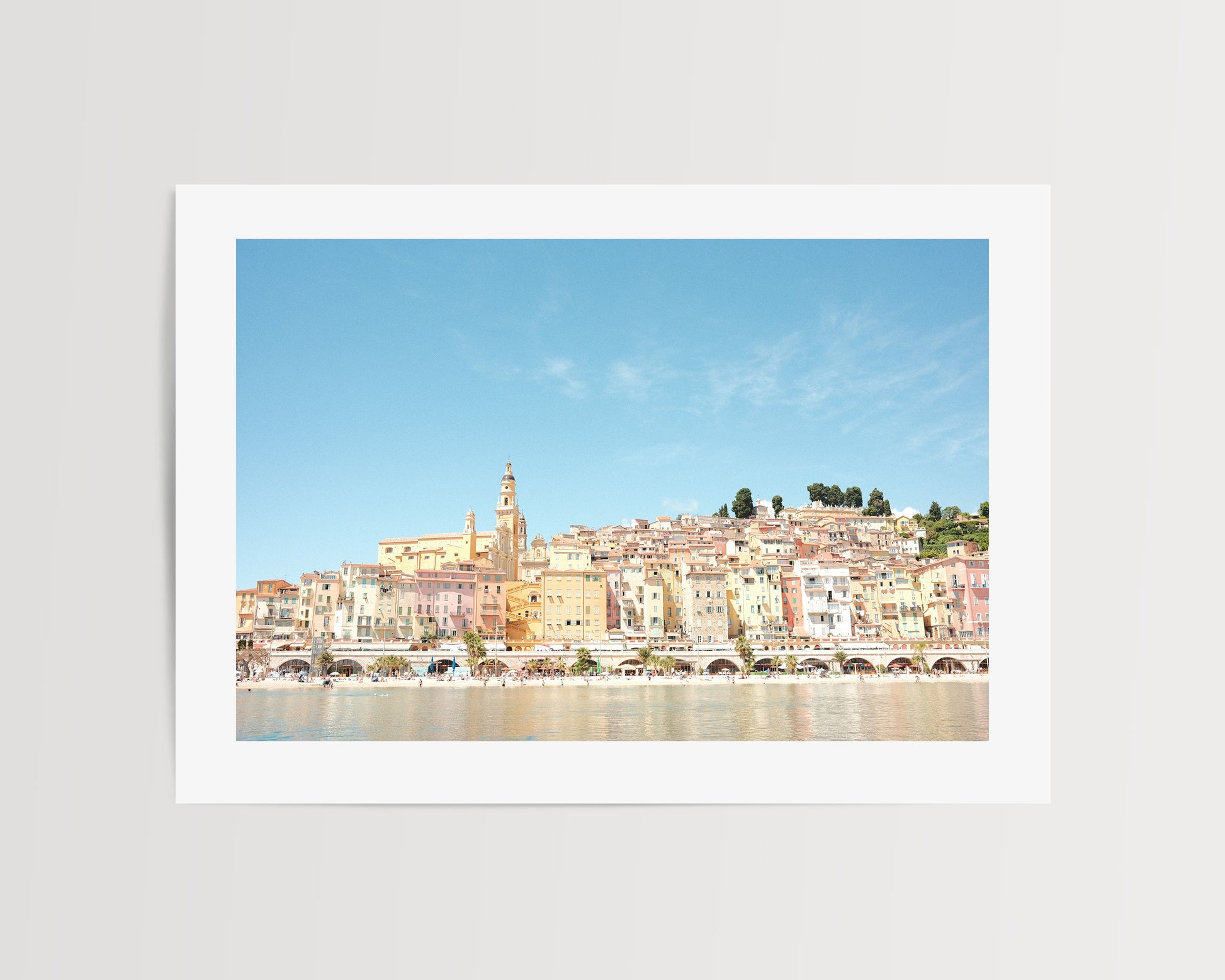 This image captures Menton's iconic colourful hues, a nod to the town's famous lemons and mediterranean charm. The sherbet architecture and clear blue sky reflect the sunny, vibrant spirit of this coastal gem.