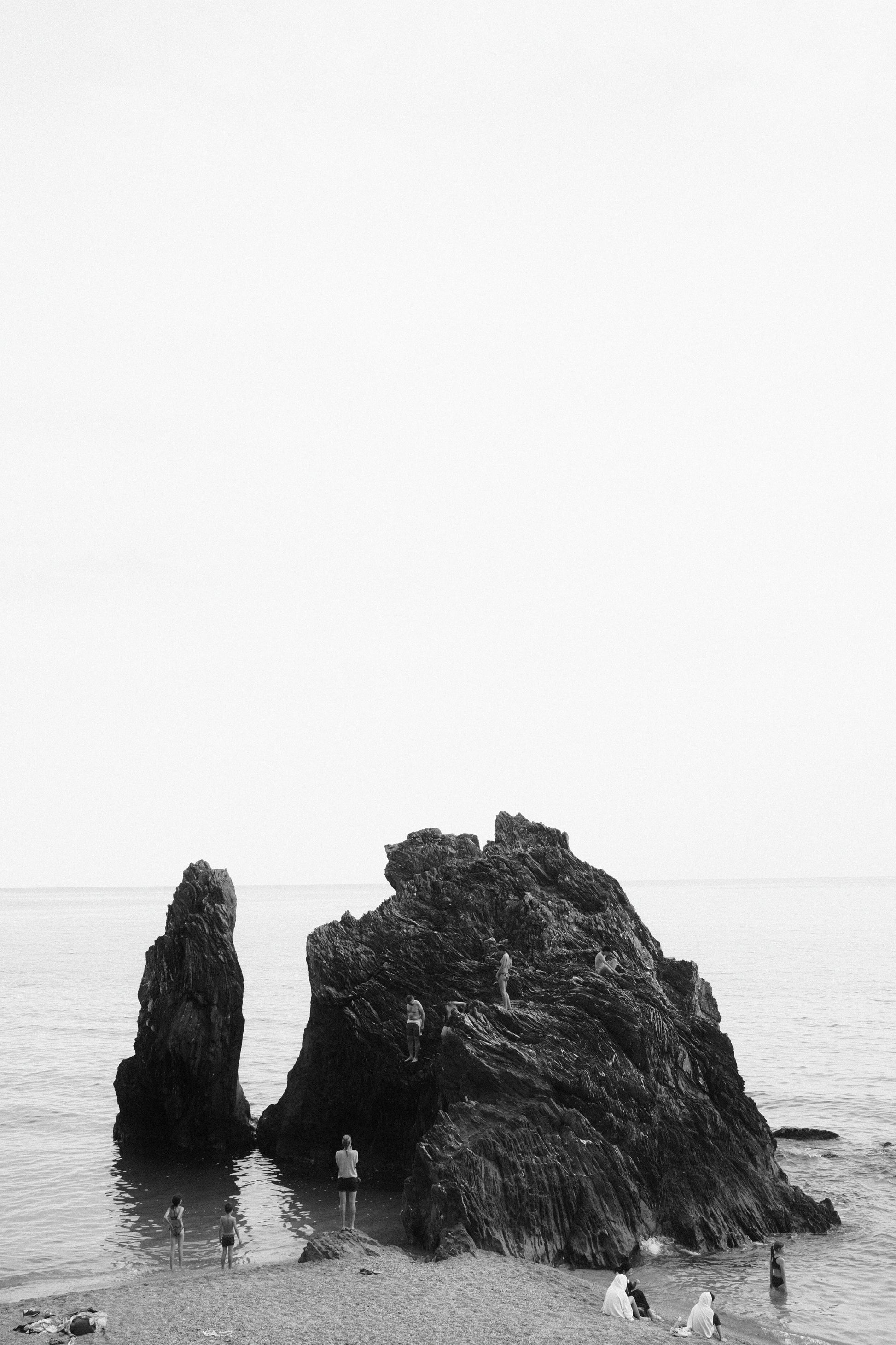A raw moment captures families and couples enjoying the last light of the day by the beach.