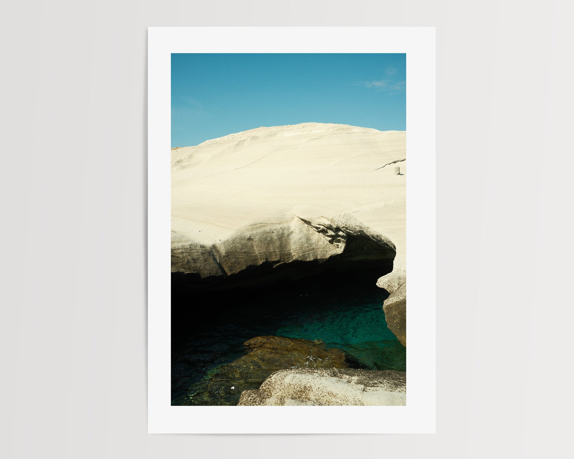 Captured at Sarakiniko where you'll find white sandstone and aqua water, like discovering the sea on the moon.